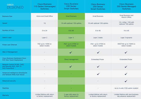 Cisco Business Switch Cbs220 Smart 24-Port Gigabit Poe 195w 4x1g Sfp Uplink