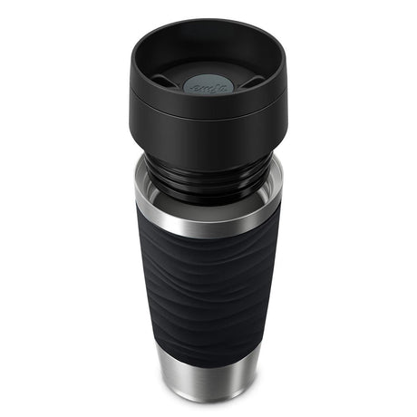 Taza Térmica Emsa Travel Mug Waves Grande Negro/Acero Inoxidable, 0,5 Litros N2022500