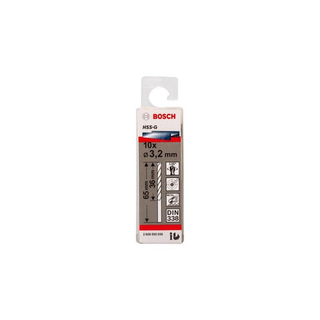 Bosch Professional Taladro Para Metal Hss-G, Ø 3,2 Mm 10 Piezas, Longitud Útil 36 Mm 2608595056