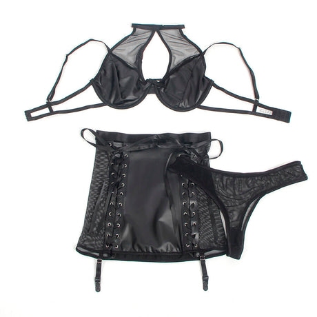 Subblime - 957582 Conjunto Sujetador Y Falda De Cuero Negro S/M
