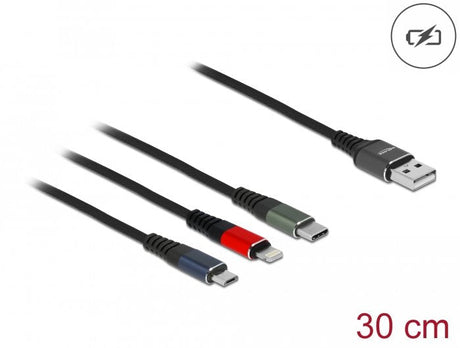 Delock Cable Usb 3 In 1 Para Lightning/Microusb/Type-C 30 Cm Negro