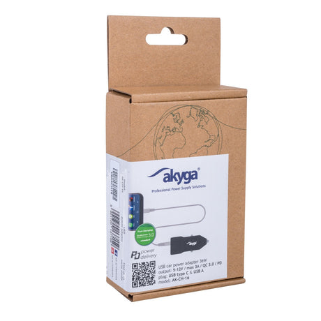 Akyga Cargador De Coche 12/24v Ak-Ch-16 36w Usb-A + Usb-C Pd Quick Charge 3.0 5-12v/1.5-3a Negro