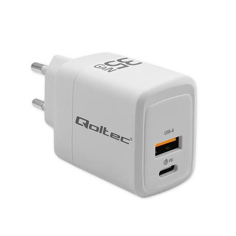 Qoltec 35w Gan 5-20v 1.5-3a 1 X Usb-C Pd 1 X Usb Qc 3.0 Biala