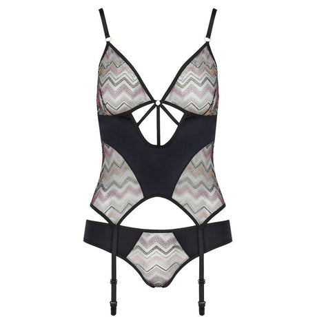 Casmir - Marcelle Corset Negro Con Liguero Y Tanga By Casmir L/Xl