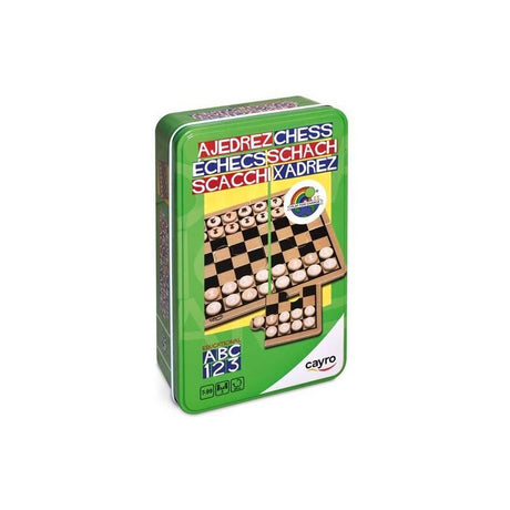 Ajedrez-Damas Madera En Caja Metal 27x27