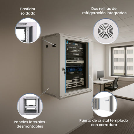 Armario Pared Extralink-19 "15u 450mm D Vidrio Negro