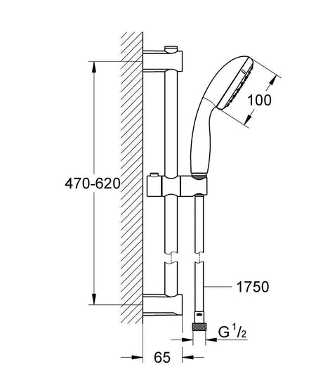 Shower Set Grohe Vitalio Start 100, Hand Shower, Stand, Hose, 2 Jets, Water-Saving,