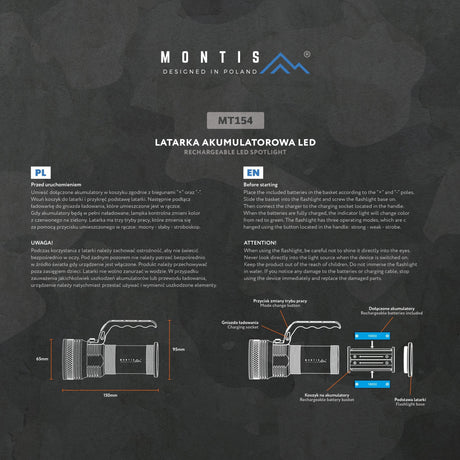 Montis Aluminiowa Reczna Latarka Akumulatorowa Led Mt154 Gris Linterna De Mano