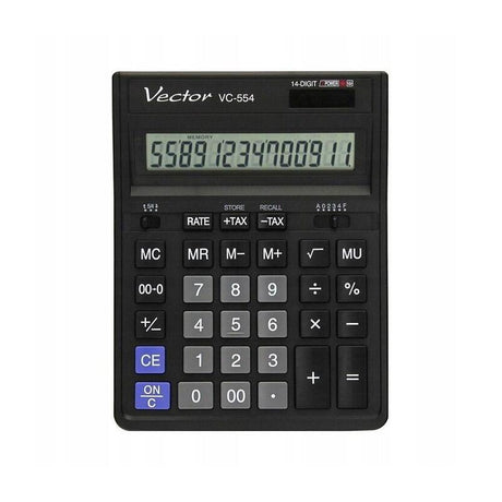Calculadora De Oficina Vector Kav Vc-554x, 14 Dígitos, 153 X 199 Mm, Negra