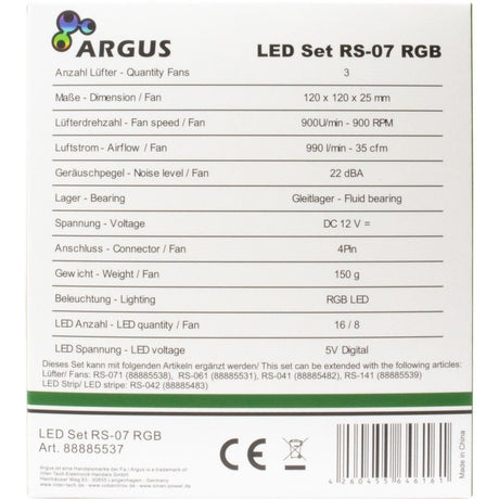 Ventilador Inter-Tech 120 * 120 * 25 Argus Rgb-Fan Set Rs-07, 3x Led Al Retail