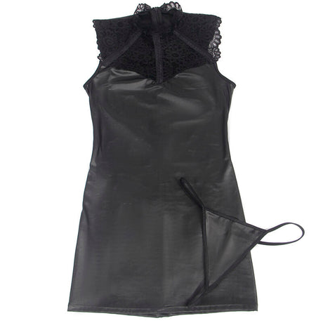 Subblime - 957704 Vestido De Cuero Con Cremallera Y Encaje Negro S/M