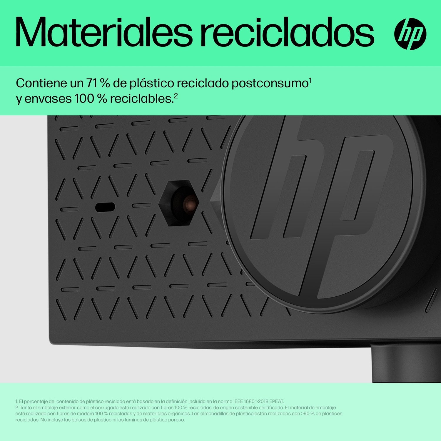 HP se compromete a reducir el plástico en vertederos y océanos. Esta cámara web contiene un 71 % de plástico reciclado posconsumo y un embalaje 100 % reciclable. [3,4]