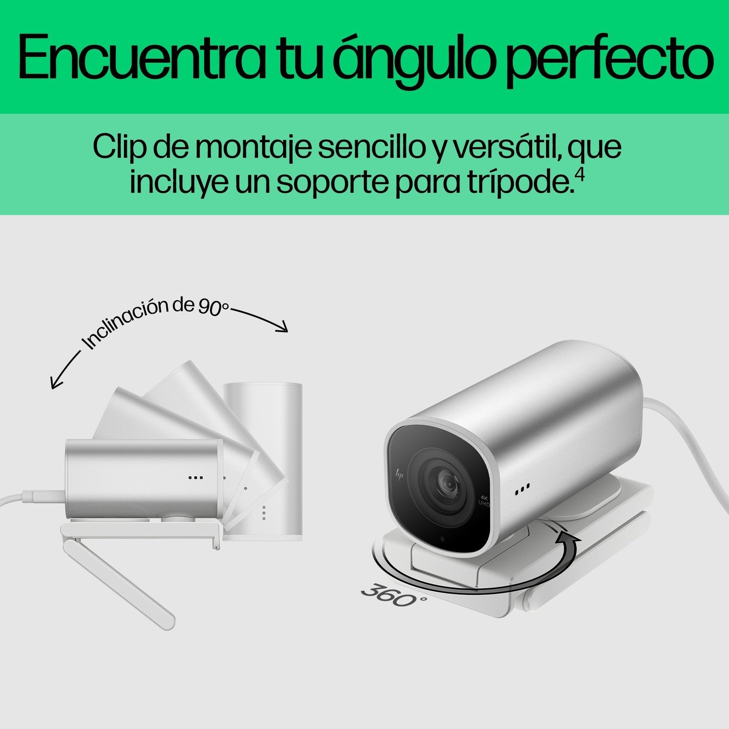 HP 960 4K Streaming Webcam cámara web 8 MP 3840 x 2160 Pixeles USB Plata