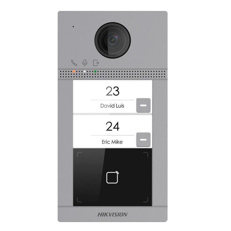 Placa De Calle Videoportero Cámara 2mp 2 Botones (2 Apartamentos) Tarjeta Mf Superficie Ik08 Aluminio Hikvision