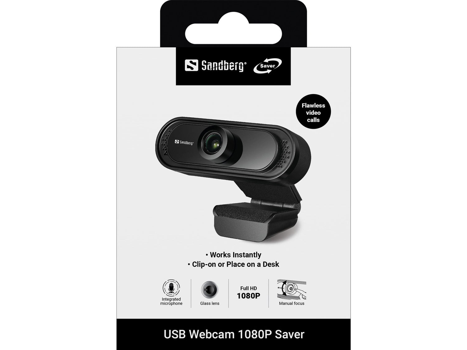 Sandberg USB Webcam 1080P Saver. Megapixeles: 2 MP, Máxima resolución de video: 1920 x 1080 Pixeles, Tipo de cámara HD: Full HD. Interfaz: USB, Color del producto: Negro, Tipo de montaje: Puesto. Sistema operativo Windows soportado: Windows 10, Windows 7, Windows 8. Peso: 95 g. Tipo de embalaje: Caja, Ancho del paquete: 120 mm, Profundidad del paquete: 70 mm