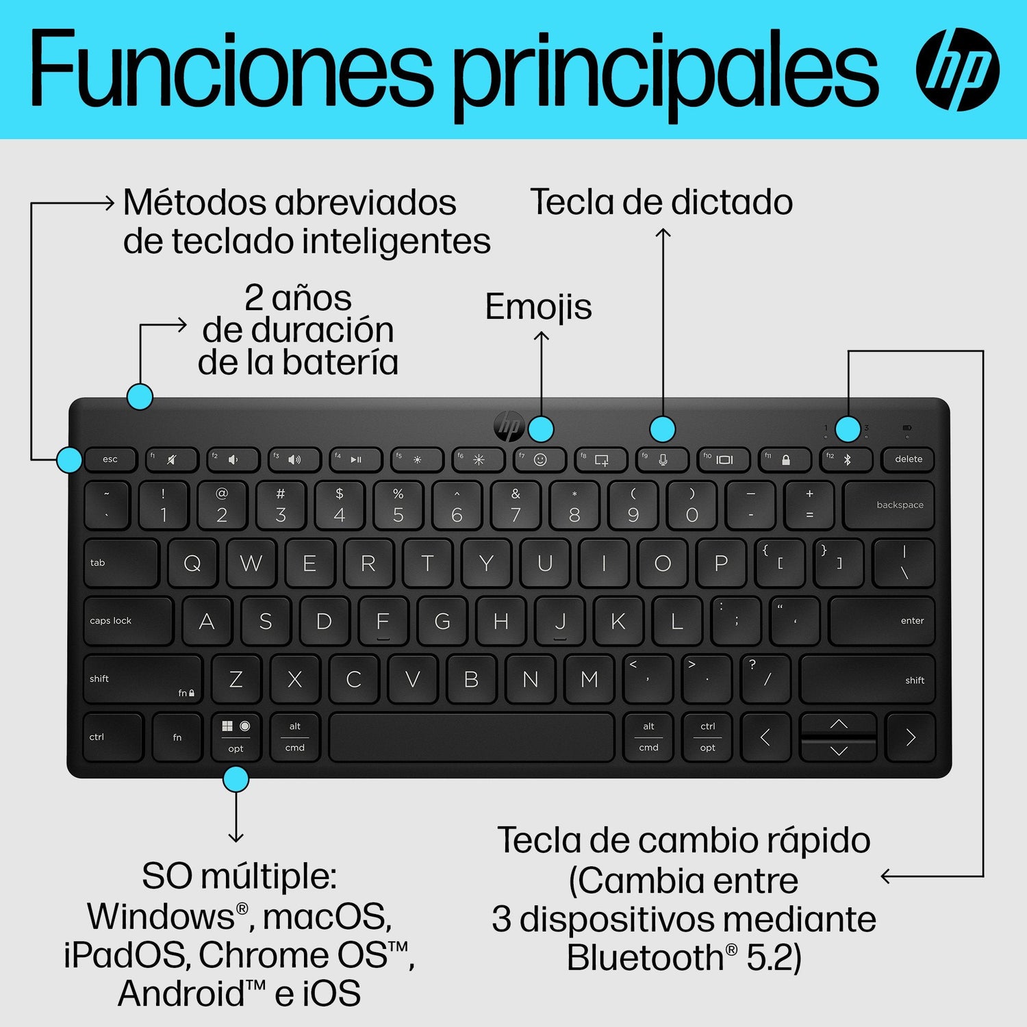 HP 355 Compact Multi-Device Keyboard teclado Hogar Negro