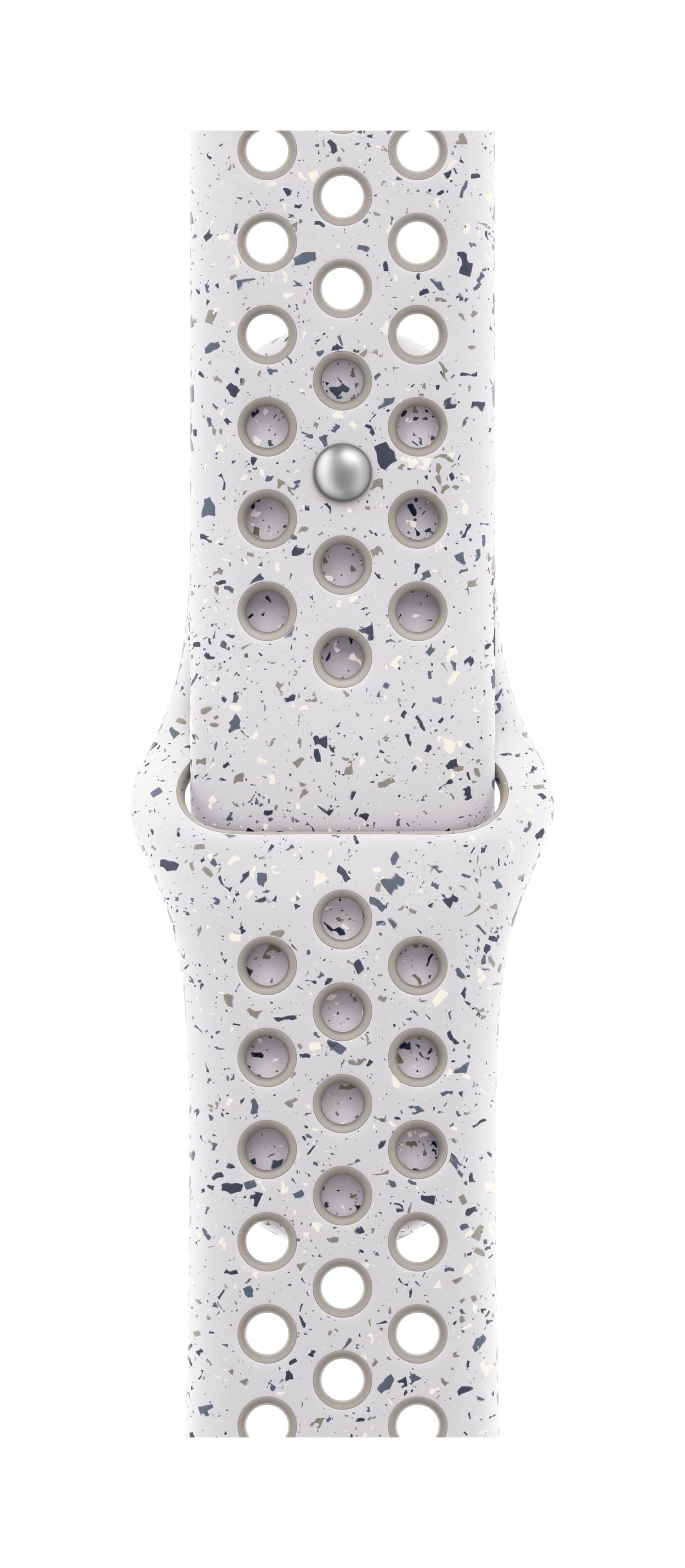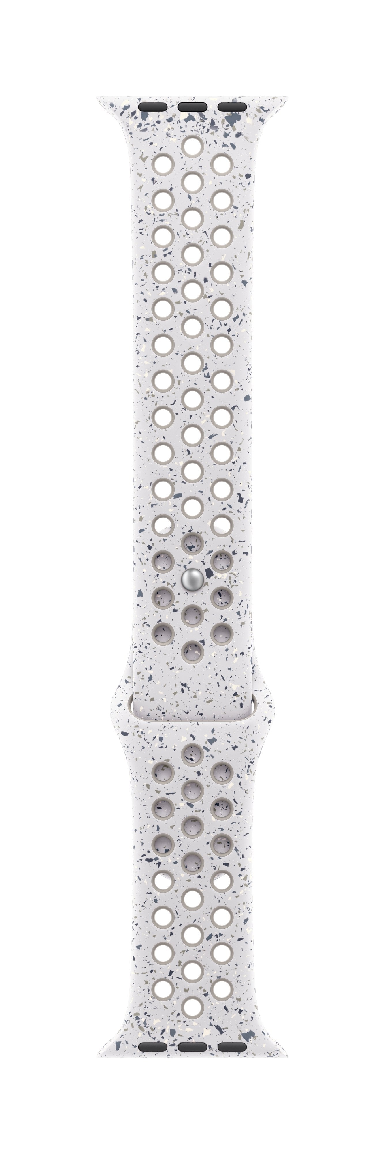 La correa Nike Sport es resistente y suave a la vez, además de transpirable gracias a sus perforaciones hechas por compresión. Incluye fragmentos de distintos colores que se combinan de forma aleatoria para crear un diseño único. Está hecha de un material flexible y agradable al tacto que se adapta con elegancia a la forma de tu muñeca. Su cierre de clip de aluminio está grabado con el logotipo de Nike y le da al pasador un elegante acabado mate.
