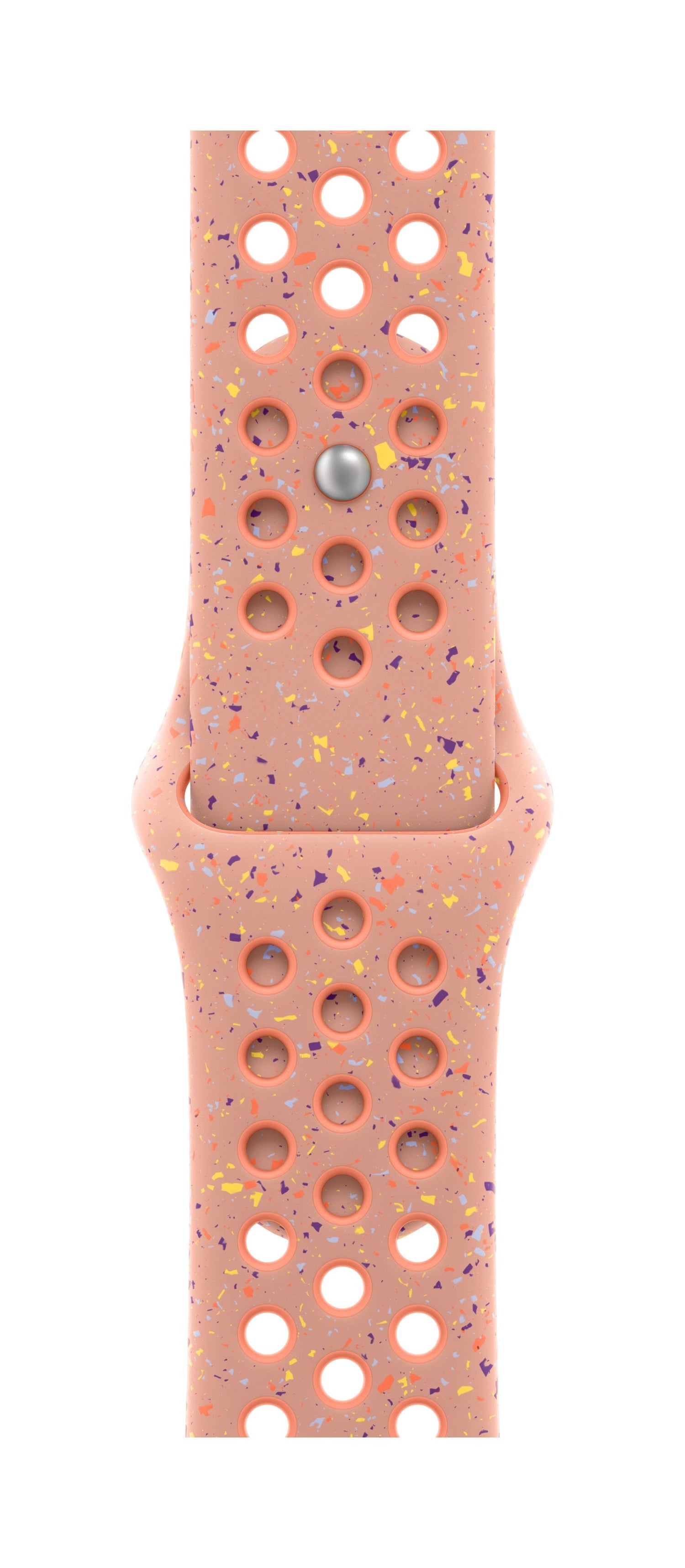 La correa Nike Sport es resistente y suave a la vez, además de transpirable gracias a sus perforaciones hechas por compresión. Incluye fragmentos de distintos colores que se combinan de forma aleatoria para crear un diseño único. Está hecha de un material flexible y agradable al tacto que se adapta con elegancia a la forma de tu muñeca. Su cierre de clip de aluminio está grabado con el logotipo de Nike y le da al pasador un elegante acabado mate.