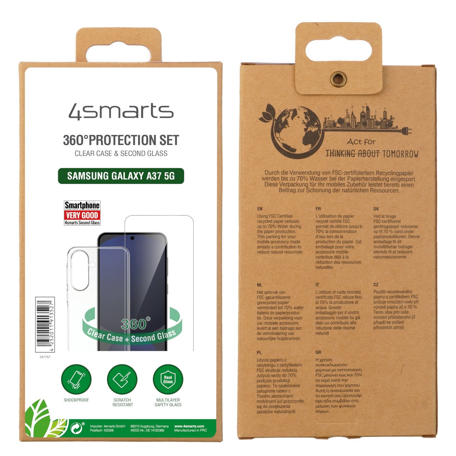 4smarts 541757. Tipo de funda: Funda, Marca compatible: Samsung, Compatibilidad: Galaxy A37 5G, Tamaño máximo de pantalla: 17 cm (6.7"), Coloración de superficie: Monocromo, Color del producto: Transparente