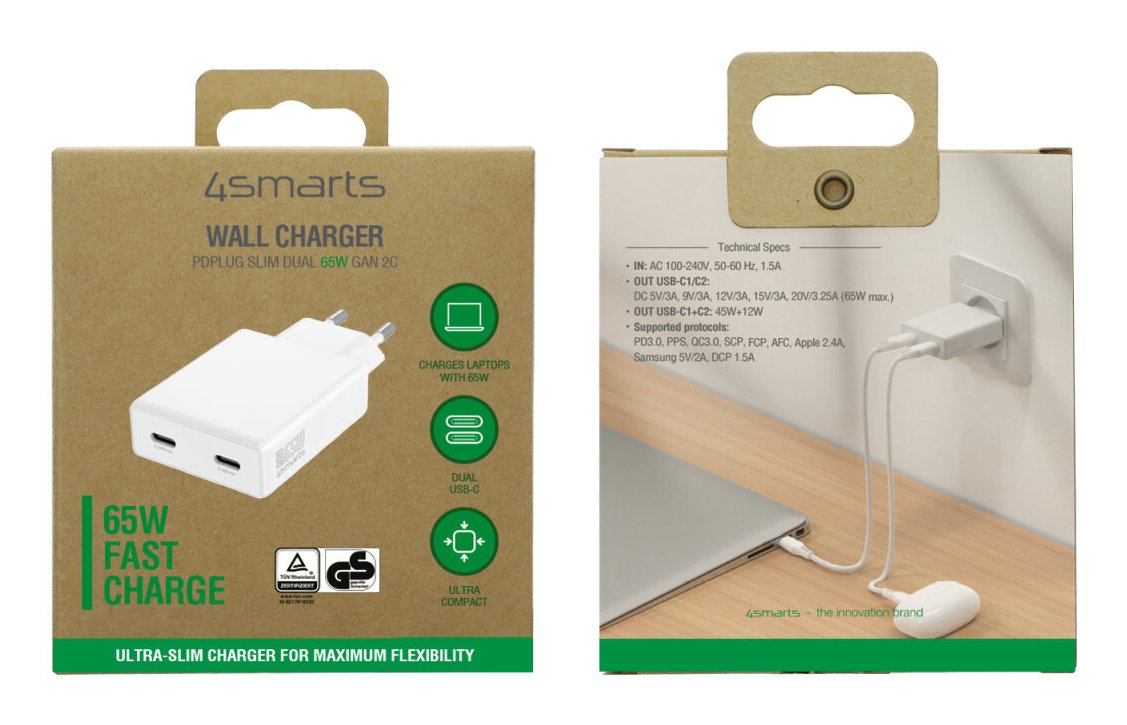 4smarts Netzladegert Pdplug Slim Dual 65w Gan 2c, Wei