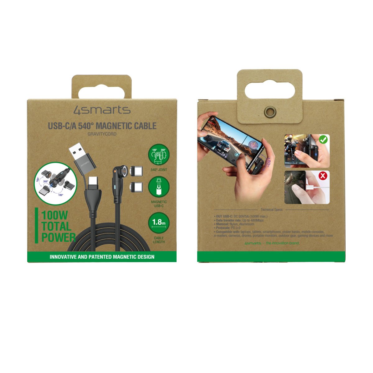 4smarts Usb-C A 540 Magnetcable Gravitycord 100w 1.8m Schwarz