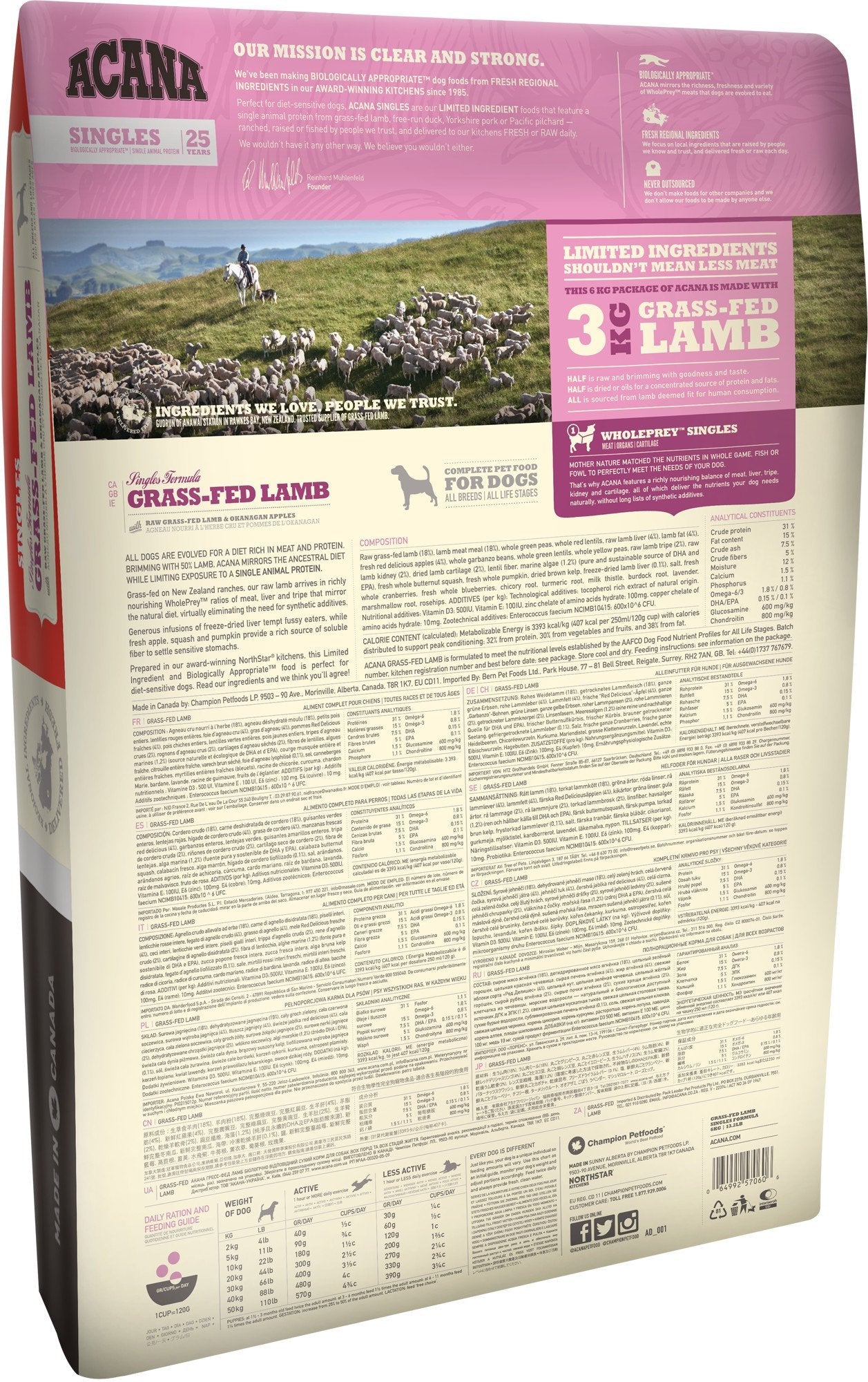 Acana Dog TF Singles Grass-Fed Lamb. Etapa de la vida de la mascota: Adulto, Tamaño de raza: Medio (11 - 25kg), Sabor de la comida de la mascota: Cordero, Peso: 11,4 kg, Sin cereales
