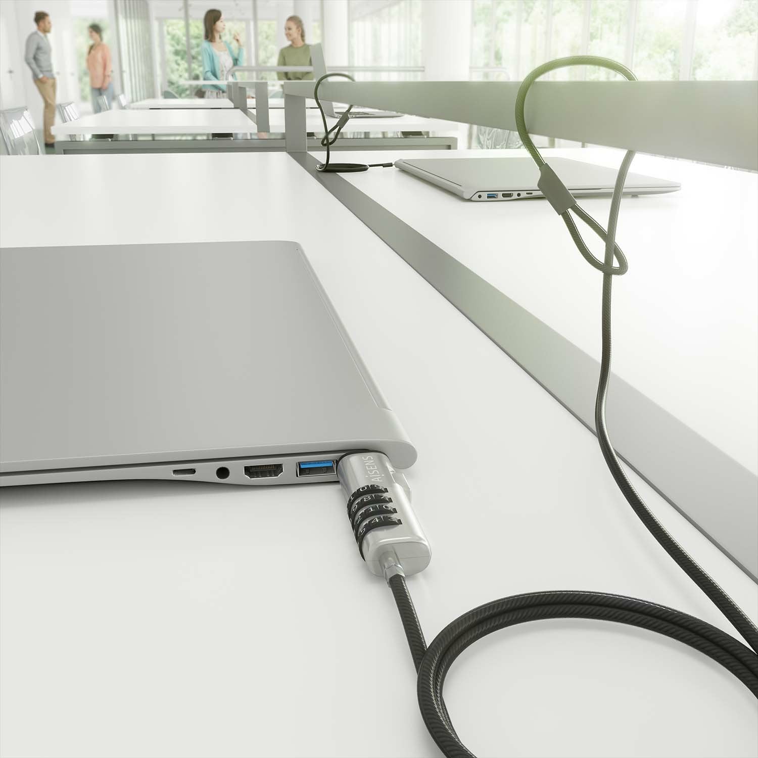 AISENS® – Cable de seguridad de acero tipo NANO con cerradura de combinación para ordenador, monitor, portátil etc.