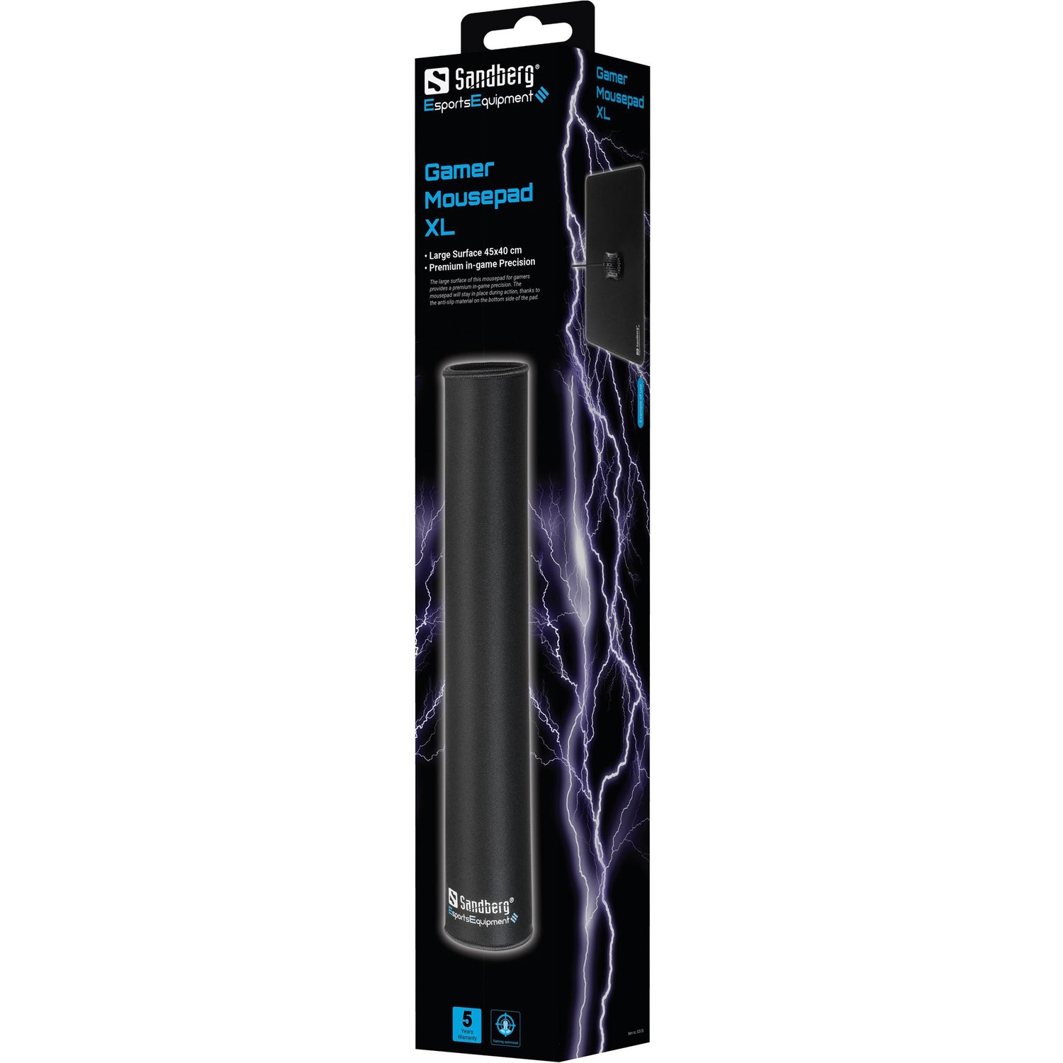 Sandberg Gamer Mousepad XL. Ancho: 450 mm, Profundidad: 400 mm. Color del producto: Negro, Coloración de superficie: Monocromo, Alfombrilla de ratón para juegos