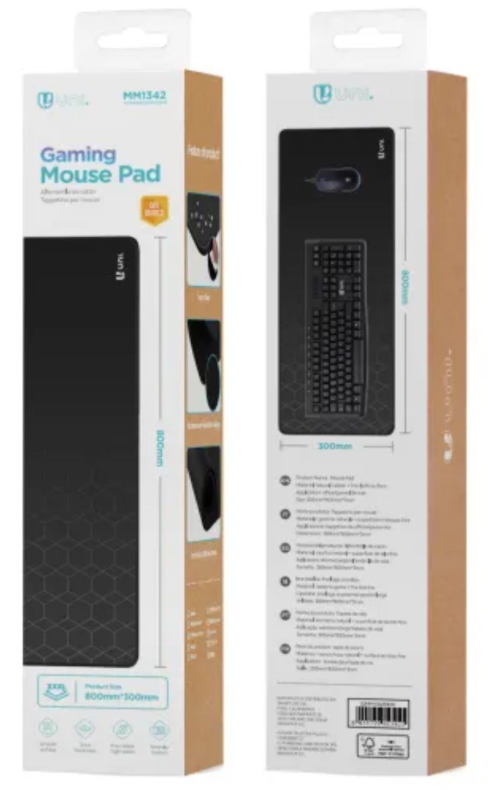 UNICO MM1342. Ancho: 800 mm, Profundidad: 300 mm. Color del producto: Negro, Coloración de superficie: Monocromo, Material: Tela, Caucho, Base antiderrapante, Alfombrilla de ratón para juegos