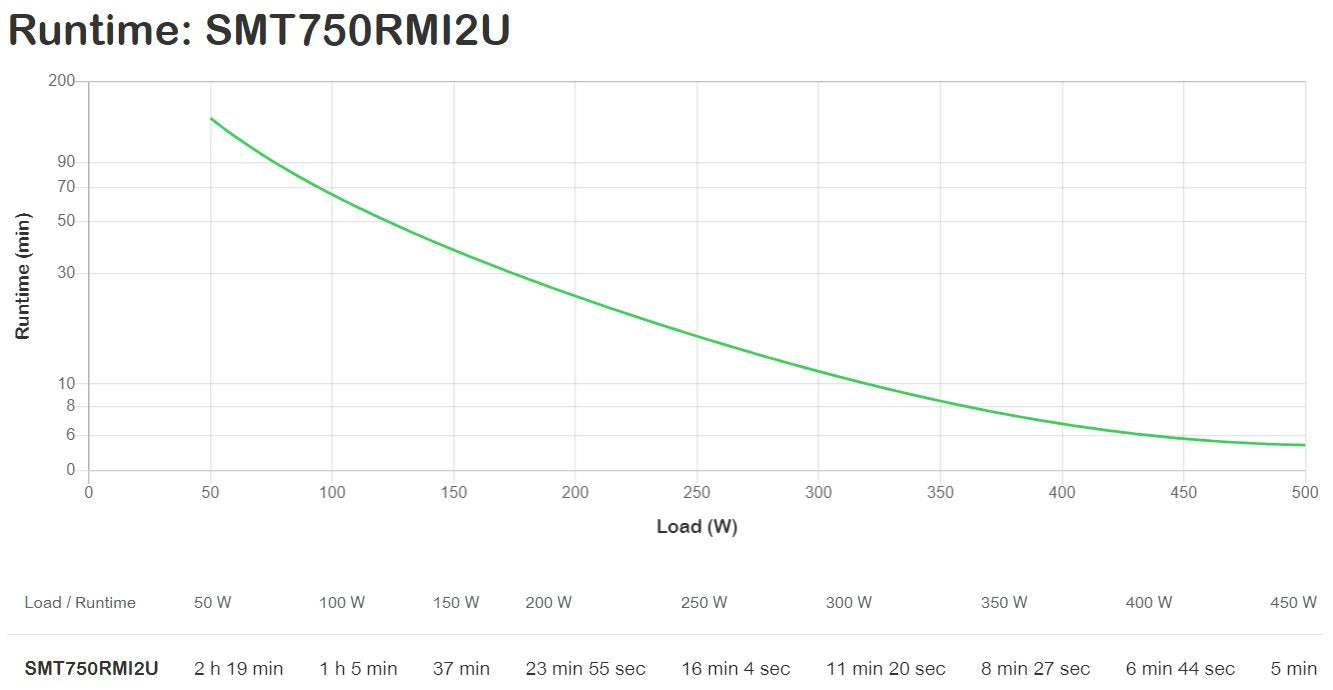APC Smart-UPS. Topología UPS: Línea interactiva, Capacidad de potencia de salida (VA): 0,75 kVA, Potencia de salida: 500 W. Tipo de salida AC: C13 acoplador, Conector: C14 acoplador, Cantidad de salidas AC: 4 salidas AC. Tecnología de batería: Sealed Lead Acid (VRLA), Capacidad de la batería: 168 VAh, Tiempo típico de respaldo a carga completa: 5,5 min. Factor de forma: Montaje en rack o Montaje en bastidor, Color del producto: Negro, Capacidad del rack: 2U. Certificados de conformidad: RoHS, Certificación: CE, CSA, EAC, EN/IEC 62040-1, EN/IEC 62040-2, RCM, TUV, UL 1778, VDE, REACH, PEP, EOLI