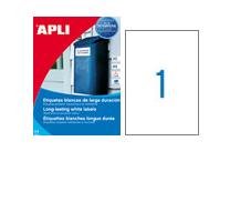 Apli Etiquetas Adhesivas 210x297mm Láser C/Rectos 1 X 20h Poliéster Blanco