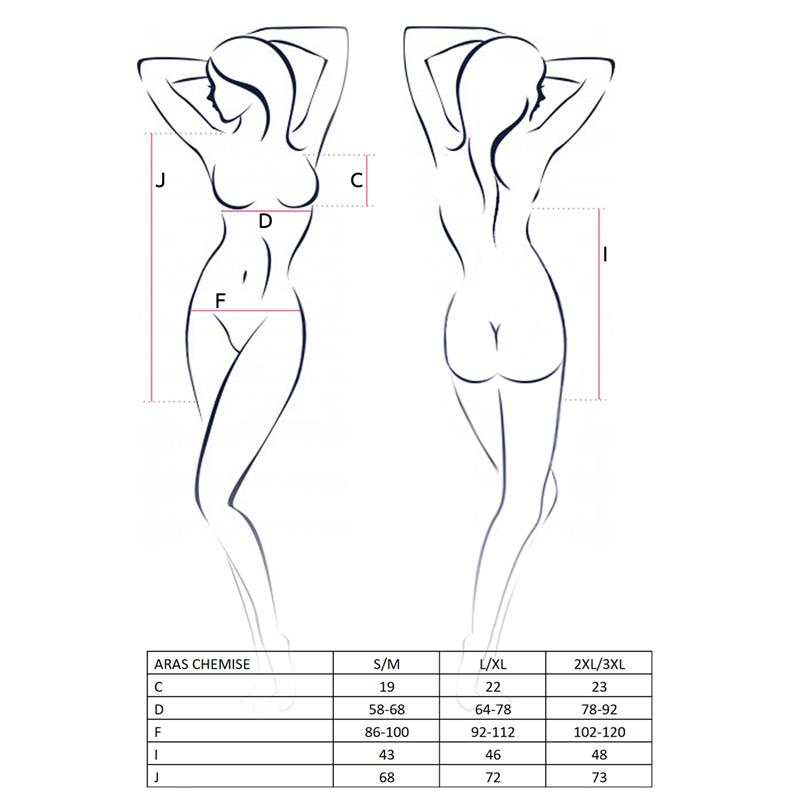 Un chemise semi transparente, con un patrón de flores que cruzan tu pecho y el centro de tu cuerpo. Gracias a su forma y a sus cortes en la zona inferior, acaricia tus curvas y realza tu figura. Para completar el look incluye un tanga negros a juego.