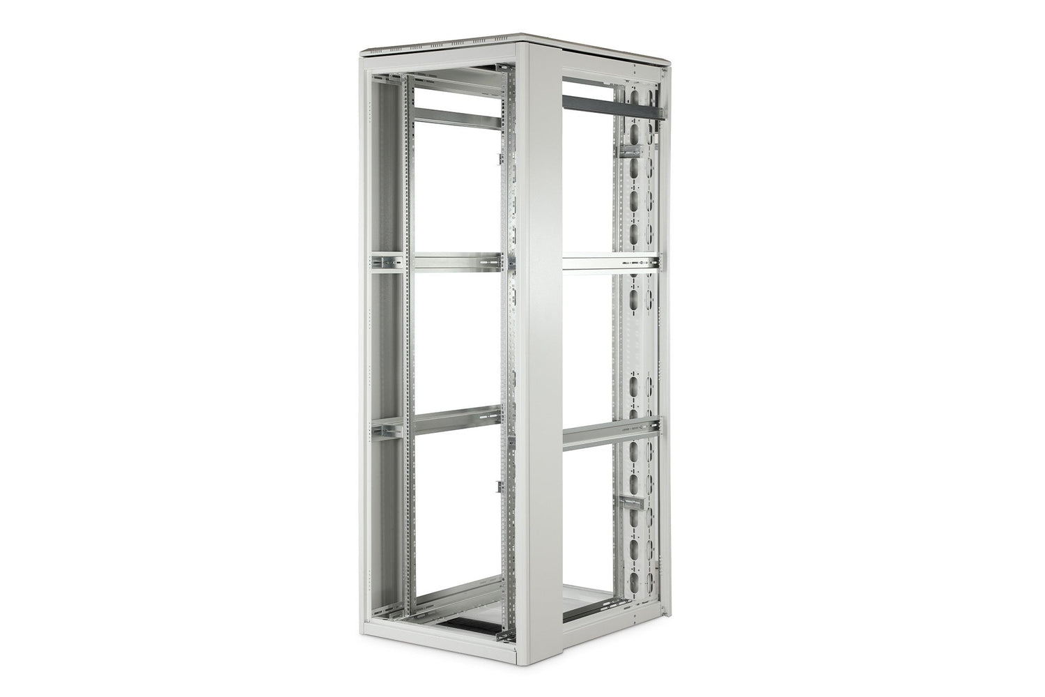- Los raíles de perfil de 483 mm (19") están conectados a puntales de profundidad para aumentar la estabilidad