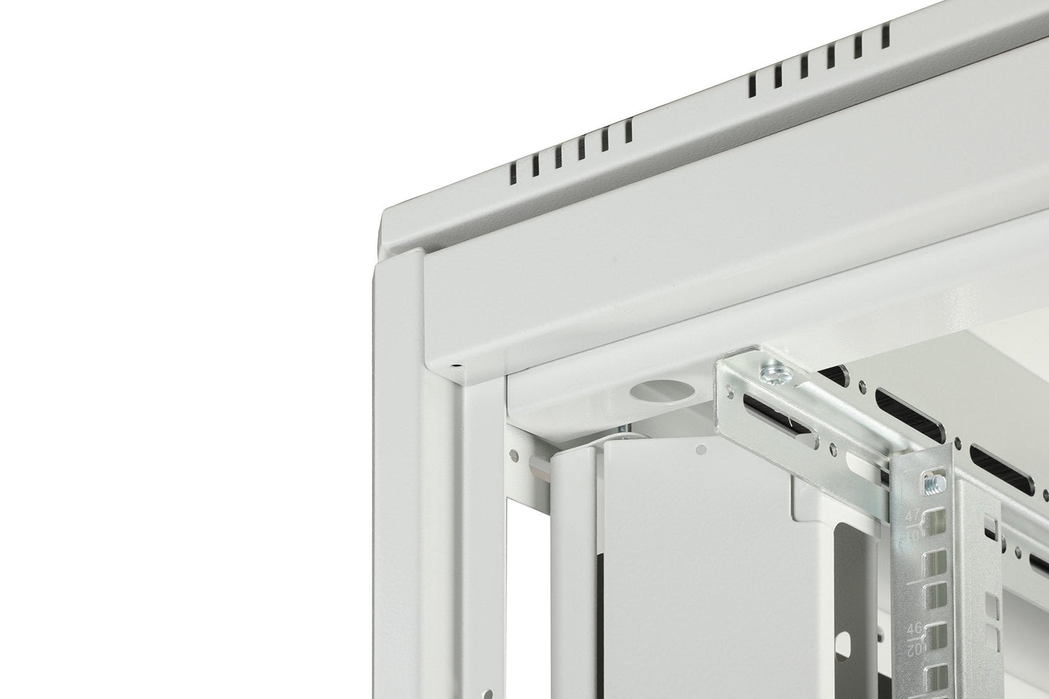 - Conductos de cables verticales con ayudas para el paso de cables y panel de cubierta instalado en el panel frontal