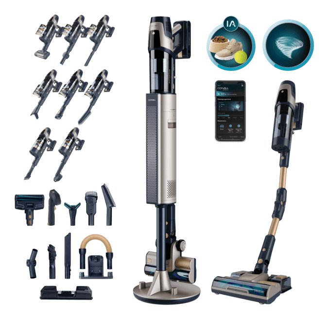 Cecotec Conga Rockstar 11500 Odyssey Station Connected IA Aspiradora escoba 2 en 1 Batería Secar HEPA Sin bolsa 1,7 L 850 W Negro 5000 Ah