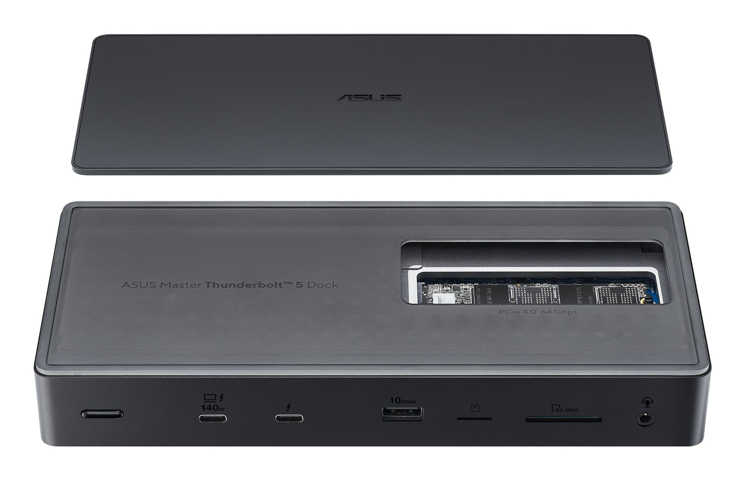 ASUS Master Thunderbolt 5 Dock DC510, Alámbrico, Thunderbolt 5, 140 W, 2500 Mbit/s, Negro, MicroSD (TransFlash), SD