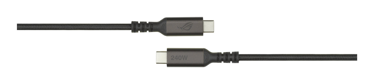 El cable USB-C ROG de 240 W de 1,5 metros ofrece velocidades de transmisión de datos estables de 480 Mbps.