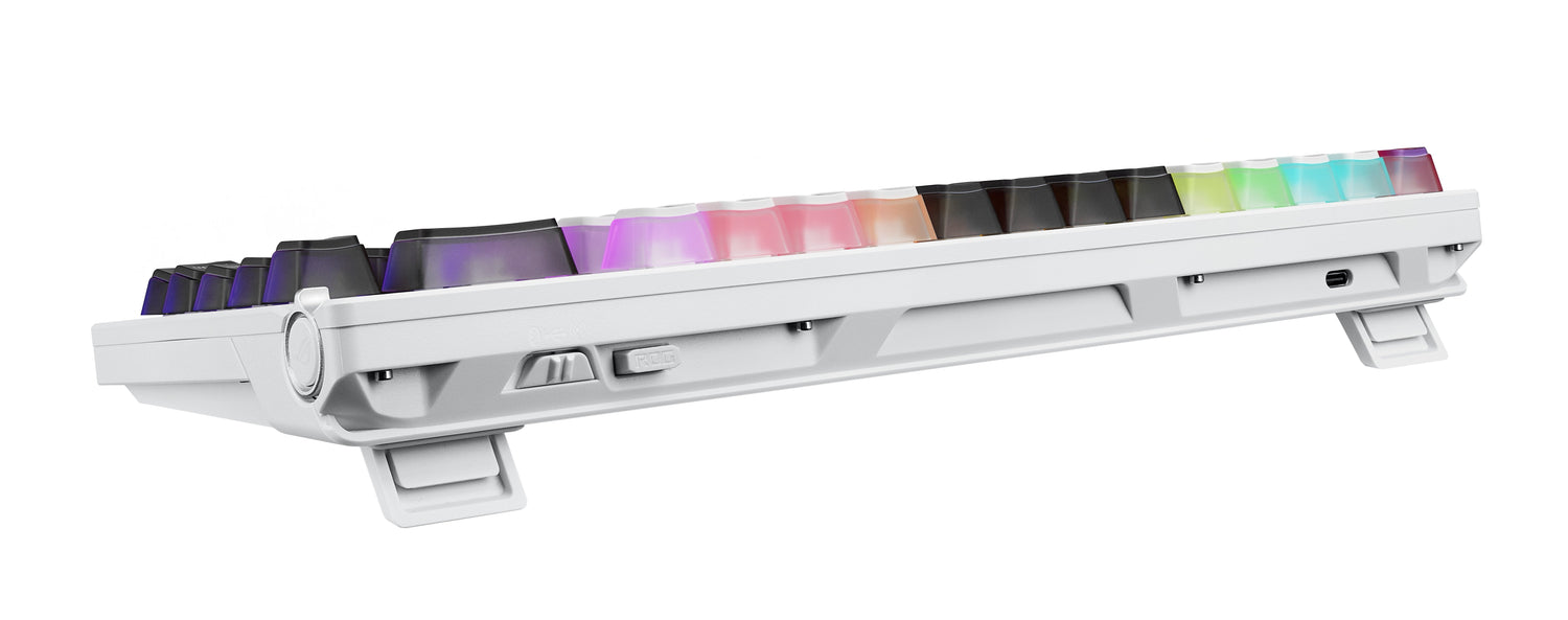 La barra espaciadora cuenta con lubricación adicional y modificaciones para mejorar la acústica y la sensación. Además, cinco LED RGB situados debajo de la barra espaciadora crean impresionantes efectos de iluminación.