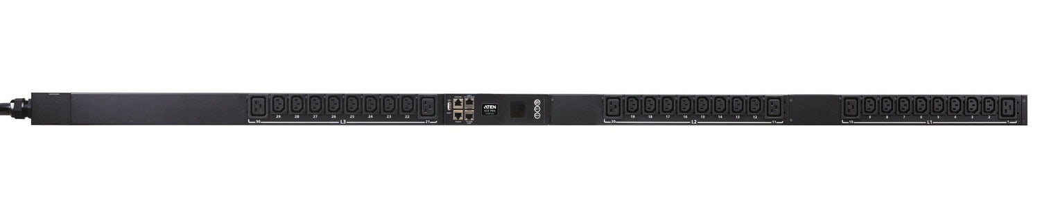 ATEN PDU inteligente trifásica. PDU tipos: Regulado, Conmutado, Capacidad del rack: 0U, Tipo: Trifásico. Cantidad de salidas AC: 30 salidas AC, Tipo de salida AC: C13 acoplador, C19 acoplador, Conector: IEC309. Longitud de cable: 3 m, Algoritmos de seguridad soportados: SMTP-AUTH, TLS. Monitoreo: Corriente, Poder, Tensión, Protocolos de red compatibles: TCP/IP, UDP, HTTP, HTTPS, SSL, DHCP, SMTP, ARP, NTP, DNS, Auto Sense, Ping, SNMP V1&V2&V3, Telnet,..., Firmware actualizable mediante: Red. Voltaje nominal de entrada: 230 - 400 V, Máxima corriente: 16 A, Frecuencia de entrada AC: 50 - 60 Hz