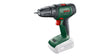 Bosch Universal Drill 18V. Diseño de producto: Taladro de pistola, Tipo de broca: Sin llave, Color del producto: Negro, Verde. Capacidad de sujección (max): 1 cm, Velocidad de giro al ralentí (máx.): 1450 RPM, Diámetro de perforación en madera (max): 3 cm. Fuente de energía: Batería, Capacidad de la batería: 1,5 Ah, Voltaje de la pila: 18 V. Peso: 1,2 kg