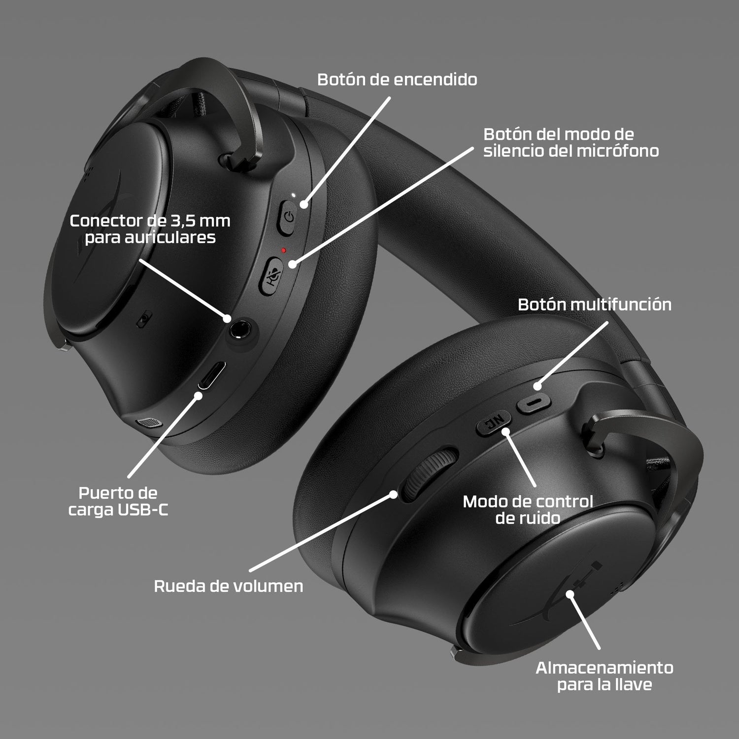 - Contenidos de caja: Auriculares, llave inalámbrica USB Type-C de 2,4 GHz, adaptador de extensión, cable de carga USB, cable de audio de 3,5 mm, funda de transporte, guía de inicio rápido