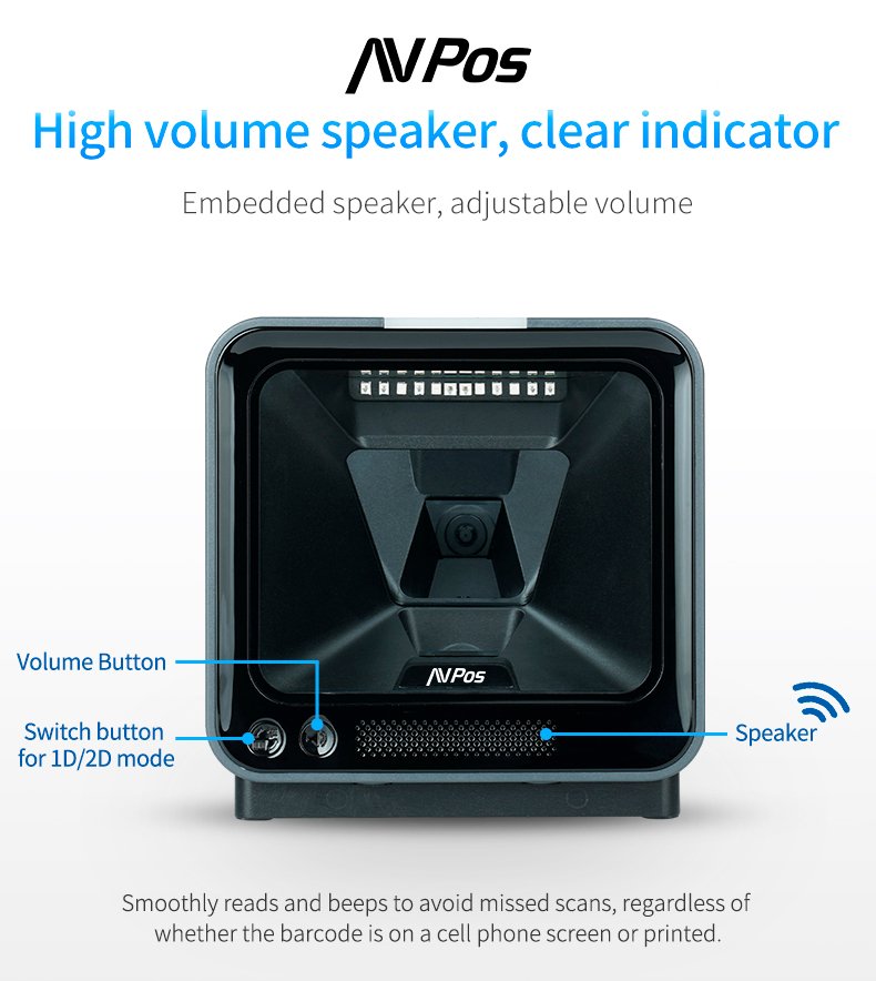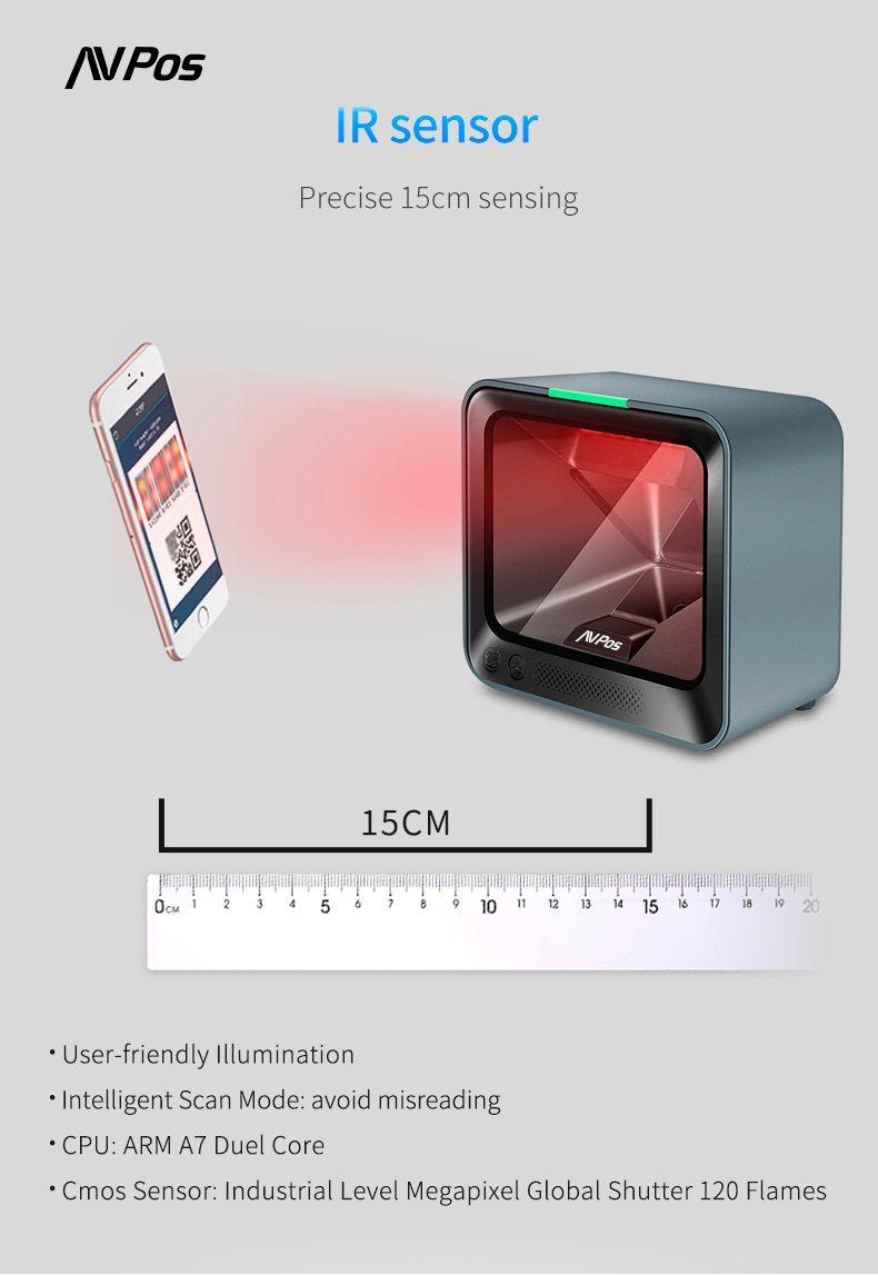 Avpos Avp-Bp760-2d Lector De Codigos De Sobremesa - Escaneo Automatico- Lectura De Codigos 1d, 2d Y Qr - Usb - Color