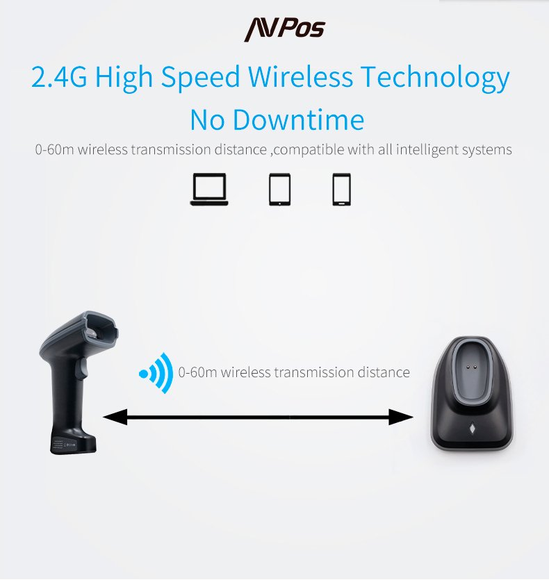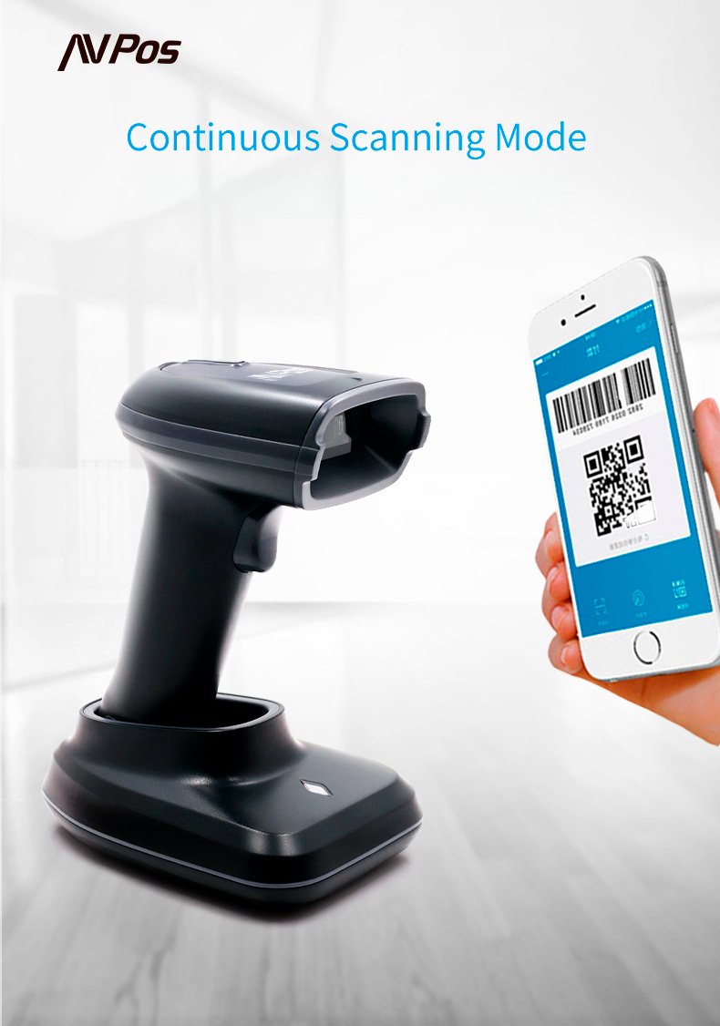 Avpos Avp-Bt230-2d Lector De Codigos Inalambrico - 2000mah - Codigos 1d, 2d Y Qr - Wireless 60m - Bt 15m - Usb - Color