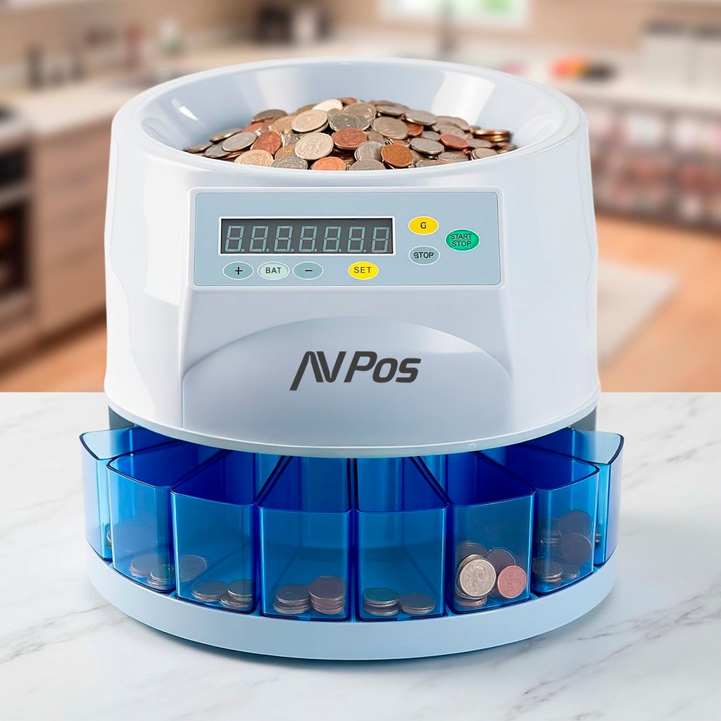 Avpos Contador/Clasificador De Monedas Ccm6 - Monedas Desde 1 Centimo Hasta 2 Euros - Negro