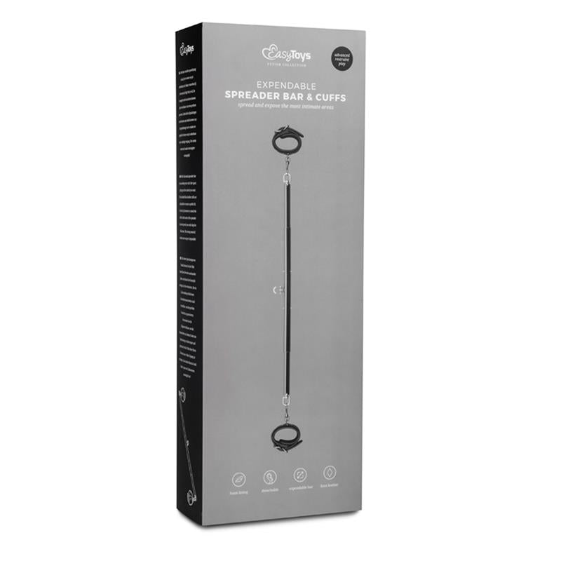 Limita los movimientos de tu sumiso o sumisa con esta fuerte barra separadora de metal con esposas para los tobillos. Esta barra se puede montar en el techo usando el anillo en forma de D en la parte superior de la barra. La barra en sí se puede ajustar en longitud de 70 cm a 90 cm. Las esposas también se pueden ajustar fácilmente para un ajuste perfecto. Estas están sujetas a la barra con cierres de clip, por lo que puede separarlos y usarlas por separado.
