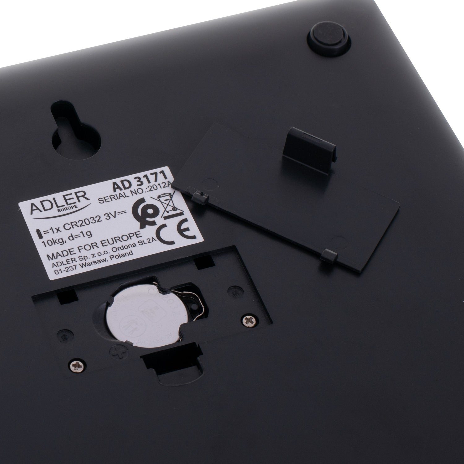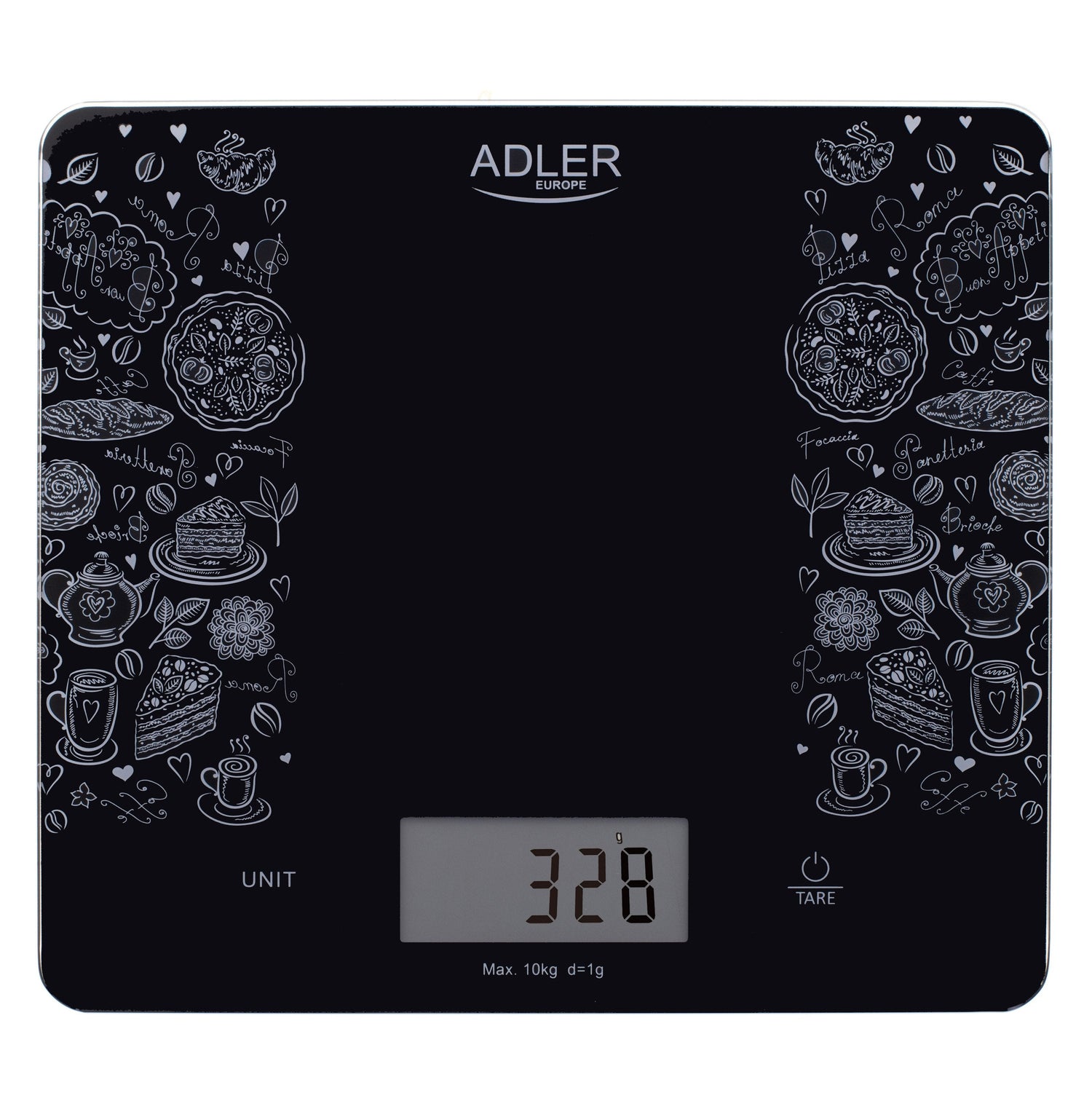 Adler AD 3171, Báscula electrónica de cocina, 10 kg, 1 g, Negro, Vidrio, Rectángulo