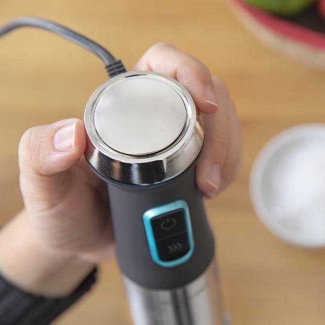 Con un selector de velocidad ajustable y la función Turbo se adapta con máxima precisión a las necesidades de cualquier receta. Las velocidades bajas son perfectas para los alimentos más blandos o para batir huevos, y las más altas o la función Turbo para batir alimentos de mayor dureza. Además, cuenta con luces LED de funcionamiento con un diseño intuitivo y llamativo.