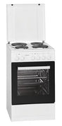 Bomann EH 561. Tipo de producto: Cocina independiente, Color del producto: Blanco, Tipo de control: Giratorio. Tipo de quemador: Hornillo eléctrico / Placa eléctrica, Número de zonas de cocción: 4 zona(s), Número de zonas de cocción eléctricas: 4 zona(s). Tamaño del horno: Medio, Fuente de alimentación del horno: Eléctrico, Capacidad neta del horno: 48 L. Consumo de energía (convencional): 0,8 kWh, Carga conectada (eléctrica): 7300 W, Voltaje de entrada AC: 220 -240 V. Ancho: 500 mm, Profundidad: 550 mm, Altura: 850 mm