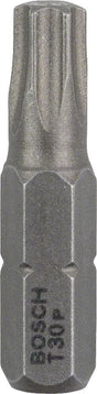 Bosch Punta de atornillar extra dura. Número de bits: 3 pieza(s), Desatornillador/puntas incluidas: Torx, Puntas de destornillador para tornillos torx: T30. Longitud: 25 mm. Tamaño del vástago: 25,4 / 4 mm (1 / 4"), Forma del vástago: Hexagonal, Tipo de embalaje: Blister