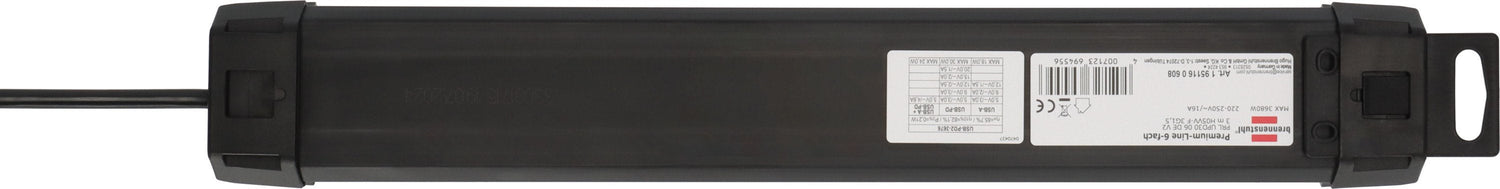 Brennenstuhl 1951160608, 3 m, Interior, Derecho, IP20, Negro, 6 salidas AC
